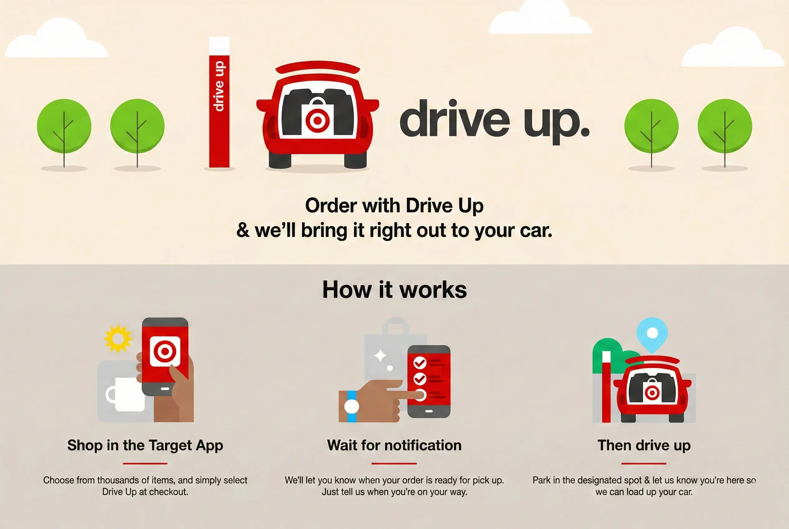 - Shop in the App: Open your Target app and look for the "Drive Up" label on products. It's like having the entire store in your pocket. I've ordered everything from milk and bread to patio furniture this way.